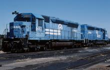 Looking tired and worn, CR SDP45 6683 (ex-EL 3652) and 6678 (ex-EL 3647) are paired up at Rutherford yard in April, 1984.