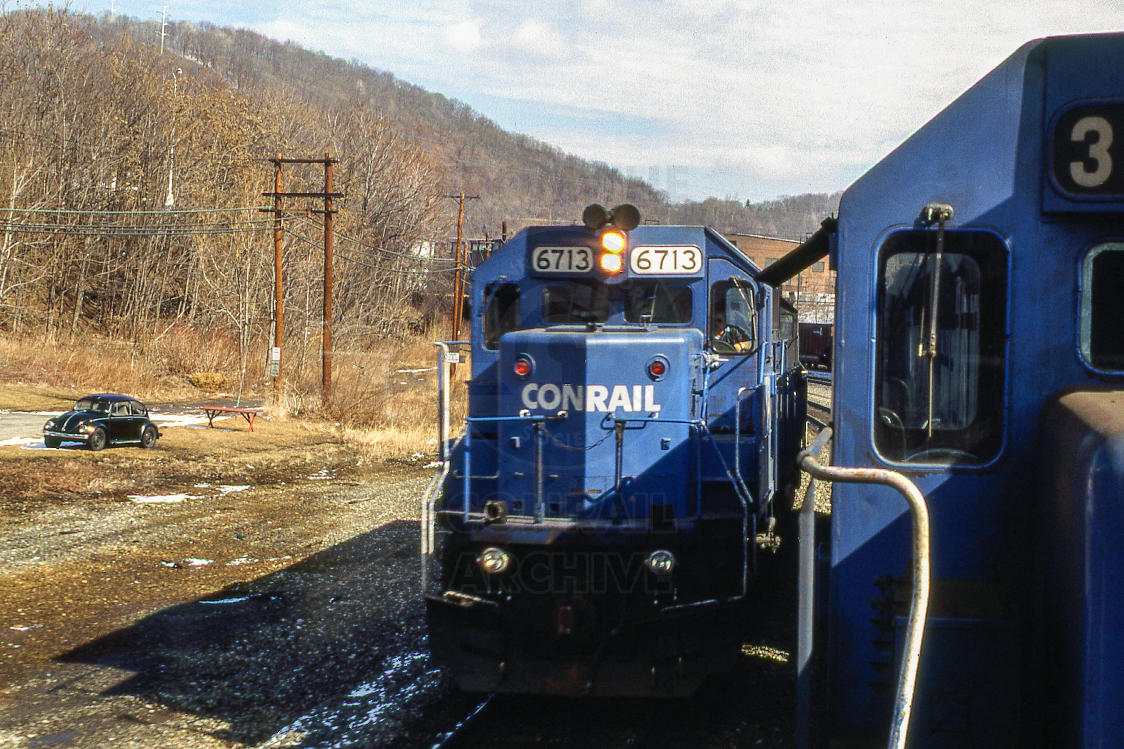 Previous Next CR 6713 EMD SD50 Pittsburgh Line Greensburg PA with unknown train Photo By Rich Bowes Year 1995 Original Date 2/1/95 Location City Greensburg PA Conrail Number 6713 Additional Galleries Rich Bowes' Conrail Photographs Collection CRHS Conrail Photo Archive Contributions