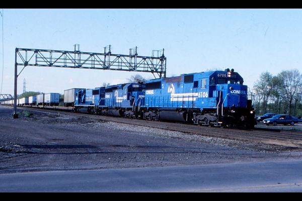 CR 6756 and CR 3298(now patched as PRR 3012) leads train TOMT-0 at Huron, OH on April 20, 1999. Chris Howe photo