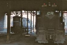 CR C430 2051 rests next to C630 6777 at the Mingo Junction roundhouse between runs in August, 1977.
