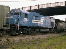 A big Alco is trailing unit on a Westbound as it passes under Jackson St.