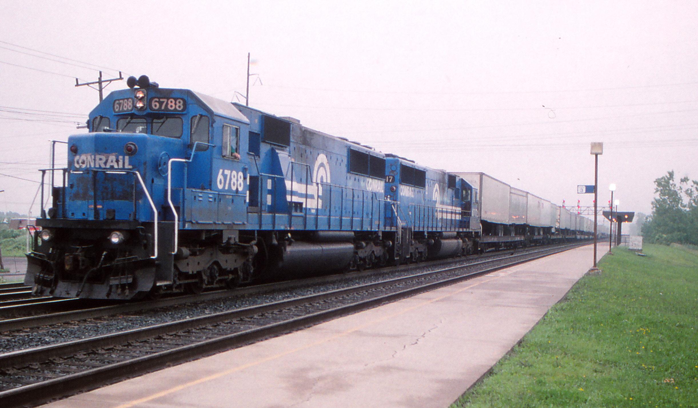 A westbound pulls past the Depew Amtrak station with 51 TOFC behind 6788/6717.