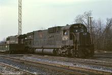 Before heading out of Abrams with their mixed freight, CR C636 6791 (ex-PC 6341) moves light with PC GP-35 2380.