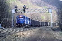 A very new SD50 leads a slightly older SD40-2 as they knock down the signals at MG. This was a unit train of Bethlehem Steel BSCX Coke Gons heading from Bethlehem PA to the Pittsburgh area.