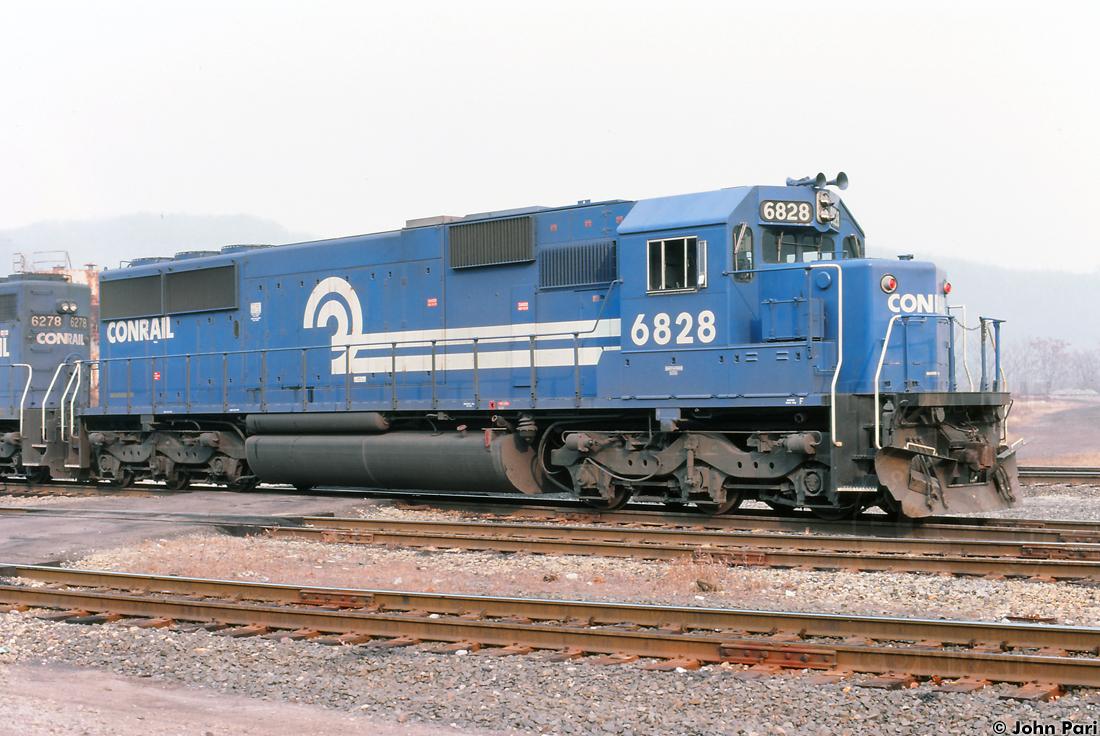 CR 6828 is seen at West Brownsville, PA on 11/8/1987. This unit became NS 5472 and was part of a group of SD50's returned to the lessor, later becoming NREX 5472, then KCS 7009.