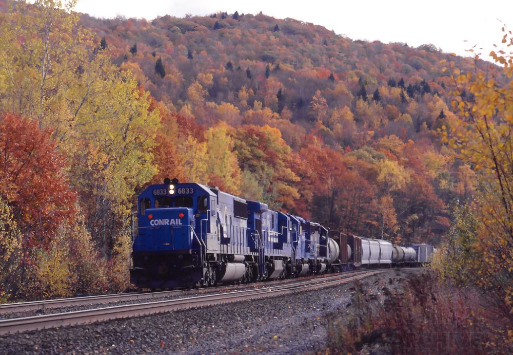 SEFR dropping downgrade just past MP 129 in Becket, MA. on Oct. 17, 1992.