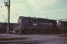 CR RSD-12 6869 works with sister unit 6866 in Morrisville yard. The old Alcos were worn out in March, 1977, but the turbocharged 251B prime movers sounded great.