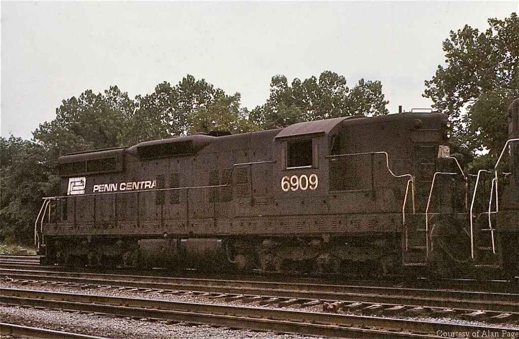 A late day in August, 1978 has former PC SD-9's 6909 and 6908 working Allentown yard.