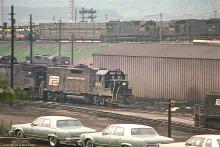 Previous Next Photo By Alan Page While CR SD38's 6925 and 6935 work the hump, former PC GP38-2 8053 rests with C425 2444 on this overcast August day at Conway in 1977. The autorack with new 1977 Buick Electras gives a historical perspective. Year 1977 Original Date 8/8/77 Location Conway PA Location Details Conway yard Equipment Type EMD SD38 Conrail Number 6925 6935 8053 2440 Predecessor Paint Scheme PC Collection CRHS Conrail Photo Archive Contributions