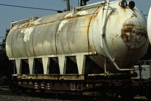 CR 715938 class F41F flatcar at Etna, PA in September 1993. Paint most likely applied by Altoona Car Shop between April 1976 to early July 1976 (P59 4-76 to P59 7-76).