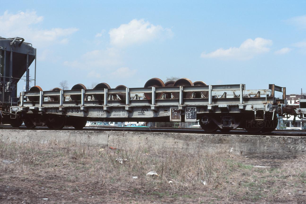 Previous Next Photo By Jeff Weaver CR 73161 is pictured in the consist of BUEN at an unknown location on the Buffalo Line, on 4/28/83. Car is ex NH W-395. Year 1983 Original Date 4/28/83 Equipment Type Wheel Cars Conrail Number 73161 Collection CRHS Conrail Photo Archive Contributions