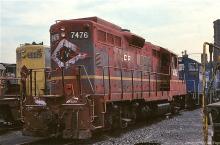 CR GP-9 7476 (ex-LV 300) pauses at the Croxton engine terminal in March, 1979.
