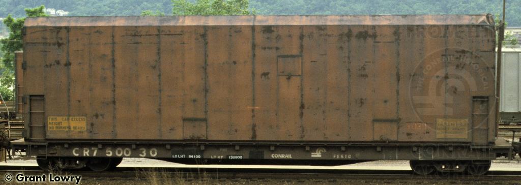 Previous Next Conrail 750030 is seen at Conway, PA. Car is equipped with Container CR 0030 to haul parts for the aerospace industry. Photo By Grant Lowry Equipment Type Class FE51D Conrail Number 750030 Collection CRHS Conrail Photo Archive Contributions