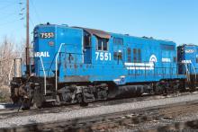 CR 7551, rebuilt from CR/PC/NYC 7441, nee NYC 6041, rests in the yard at Shiremanstown, PA on 11/19/1994.