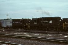 In April, 1977, PC-lettered RS11's 7623 and 7618 were working Morrisville yard.