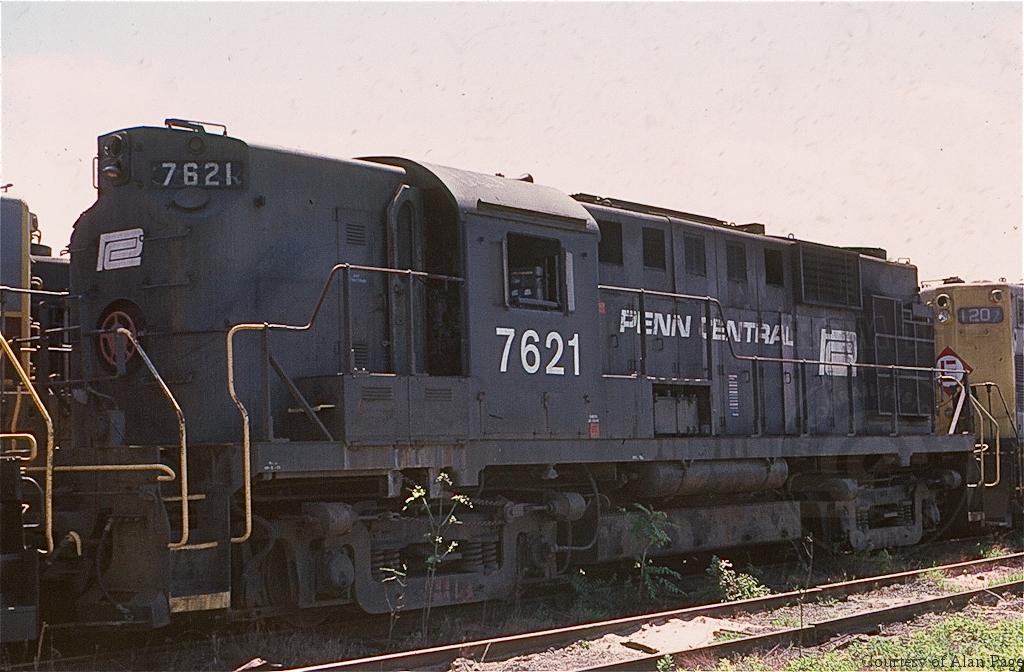 Former PC RS-11 7621 sits in the Juniata shops deadline in August, 1977.
