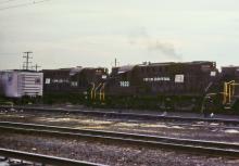 In April, 1977, PC-lettered RS11's 7623 and 7618 were working Morrisville yard.