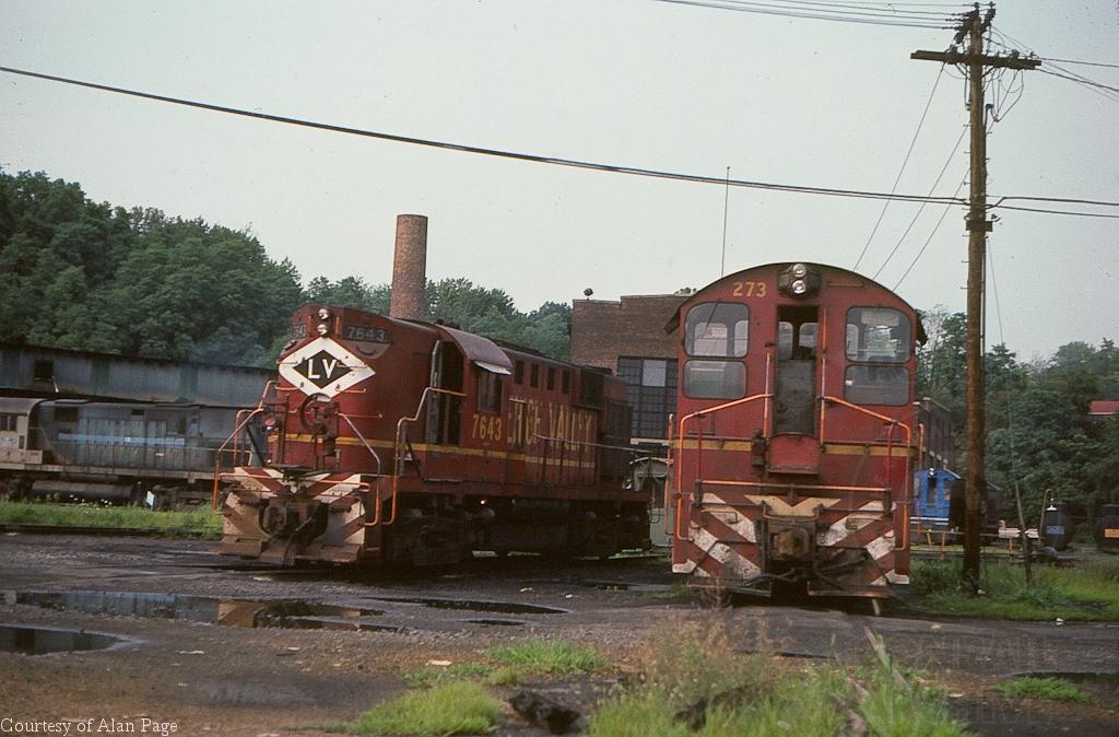 LV RS-11 7643 and SW-8 273 idle by the turntable in Bethlehem.