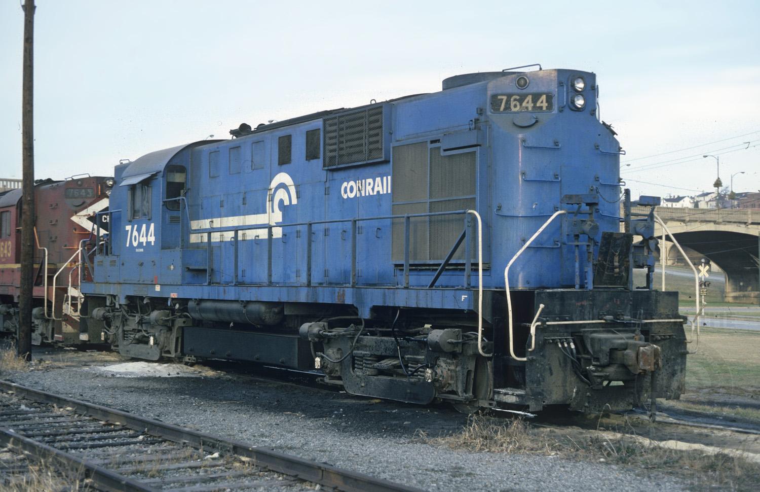 RS-11's 7644 and 7643 rest over the weekend @ Bethlehem, Pa. The two are assigned to service the exL&NE Cement Secondary..