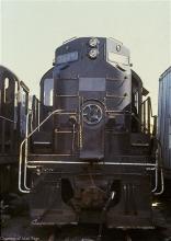 With so many retired units in August, 1978, space was tight around former PC RS-11 7645 in the Juniata shops deadline. An Alco RS-3 rests alongside.
