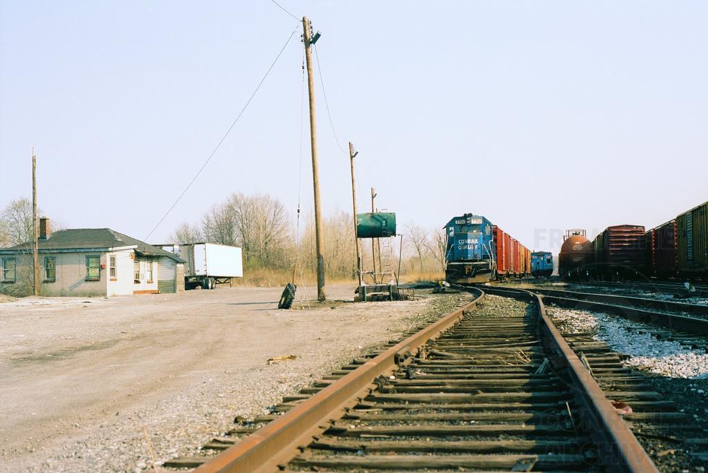 View looking east at the Conrail Hartsdale Yard in Schereville, IN back in May 1997 as Conrail GP38 7702 rests in the background. Doug Davidson photo with permission