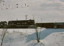 CR 40' boxcar 77562 rests behind whitelined PC RS-11 and S-2 9763 at Morrisville yard in March, 1978.