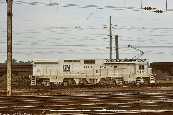 A ground shaking rumble in Harrisburg revealed 10 CR units pulling freight on a dark July, 1977 day! Here, the last four units, led by CR SD-40 6288 (ex-CNJ 3064), pound by. The entire consist included leading unit CR SD-45 6163 followed by SD-35 6009, an unidentified third unit, GP-38-2 8090, PC U25B 2636, GP-38-2 8124, SD-40 6288, SDP-45 6696, GP-38 7806, and trailing SDP-45 6697.