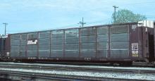 Previous Next CR 786319 is seen at Cleveland, OH on 5/17/84. Car was built 9-76. Photo By John C. Benson Collection of Chris Carangi Location City Cleveland OH Equipment Type Tri-Levels on CR Flats Conrail Number 786319 Collection CRHS Conrail Photo Archive Contributions