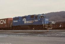 Ex-PC GP38 7885 works Allentown yard in December, 1988.