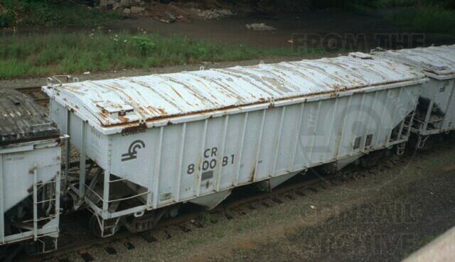 CR 80081 is seen here in June 1995 modified for use as a scale test car. Car is ex PC 459389 nee NYC blt 9-57. Car was rebuilt in 1971 by PC from a car from NYC lot 865H, 866H, 867H or 869H.