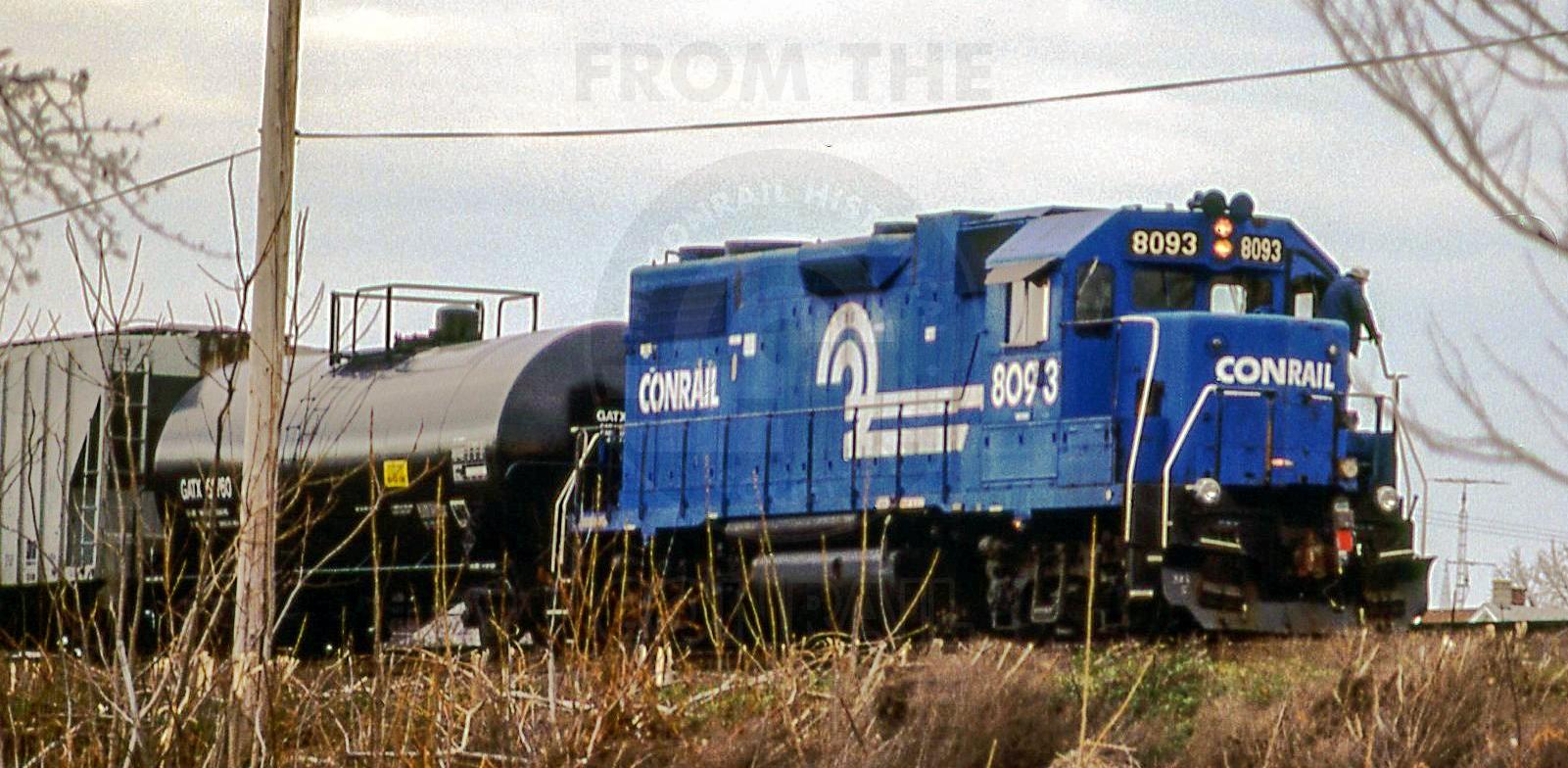 Previous Next Photo By Rich Bowes CR 8093 EMD GP38-2 Hagerstown Sec Trk Chambersburg PA with unknown train Year 1997 Original Date 11/1/97 Location Chambersburg PA Conrail Number 8093 Additional Galleries Rich Bowes' Conrail Photographs Collection CRHS Conrail Photo Archive Contributions
