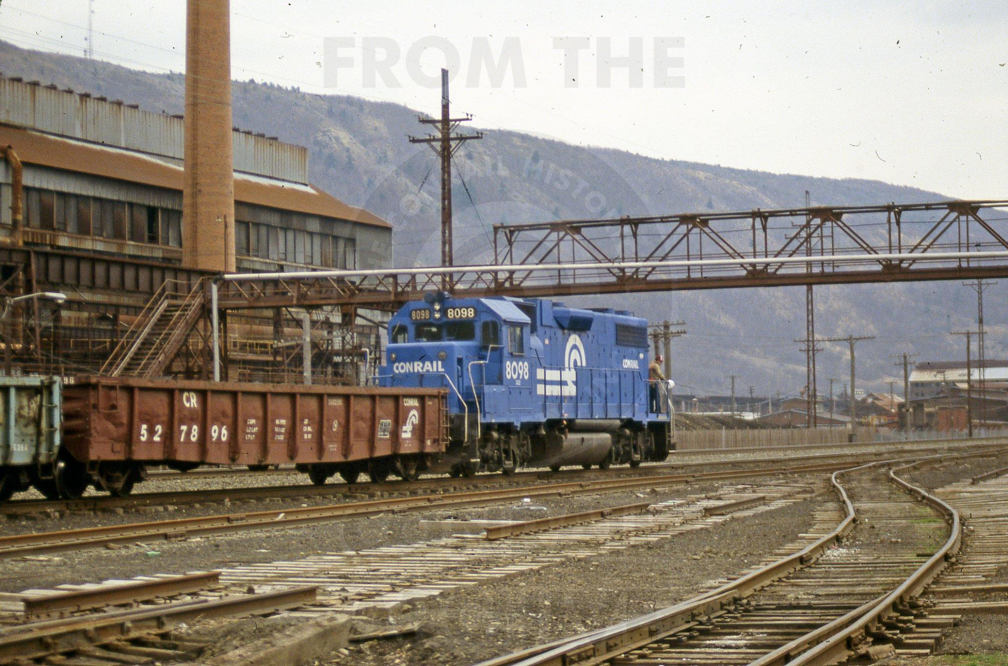 A closer view of 8098passing the West Zinc Plant, April 1988.