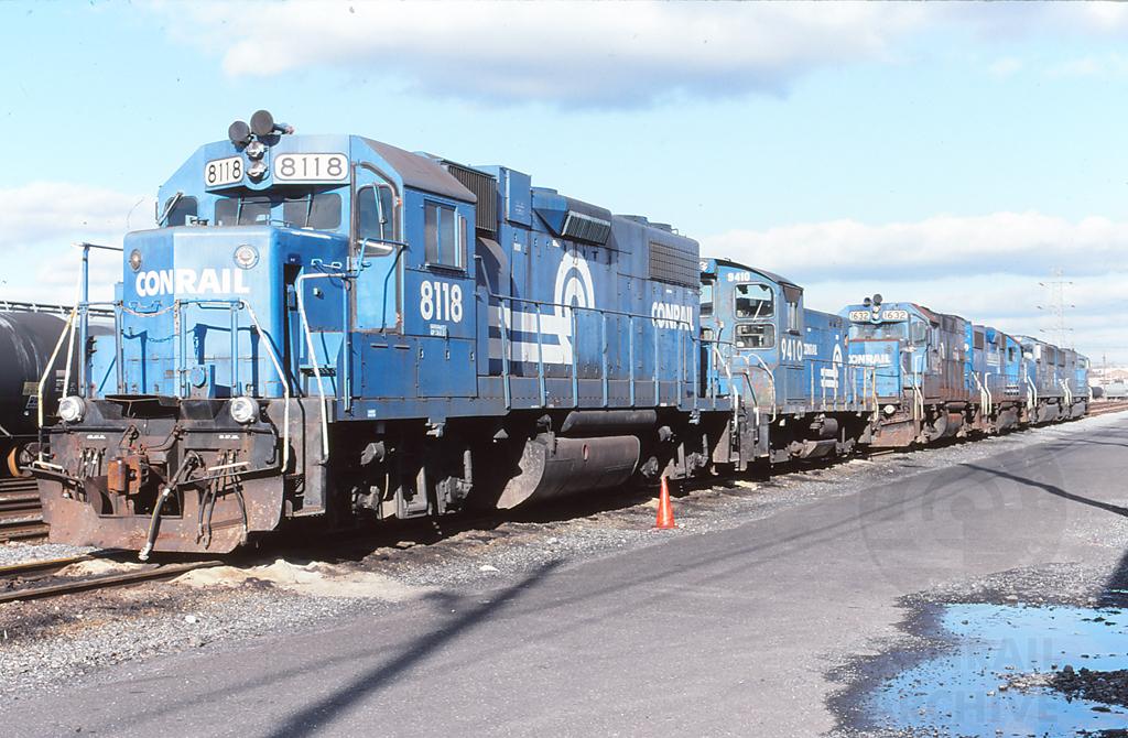 CR 8118 is seen along with other CR power at Stoney Creek Yard in Stoney Creek, PA on 12/28/97.