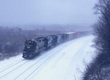 The 8139 with westbound tonnage at the Rt. 8 overhead in Hinsdale, MA. on March 1, 1980.