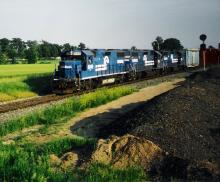 FWEL-5 with 8149, 8146, and 8145 at Leesburg, IN on June 15, 1996. This train always ran push-pull, as you'll see in the next shot
