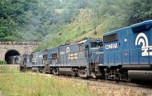 CR GP38-2 8151 leads U23B's 2719, 2748, and 2781, and a GP into the tunnels at Gallitzin in August, 1979.