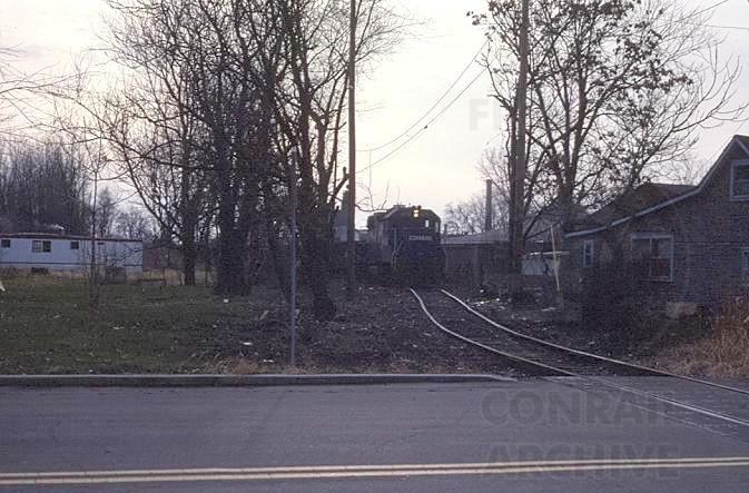 In this series of 3 shots we'll see CR 8170 as it makes a rare daylight appearance on the Muncie Belt line. Here's the train as it makes its way toward the East Willard Street crossing in Muncie, IN at 5pm on December 20, 1984. Bob Jettmore photo used with permission