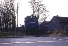 In the second of three shots, CR 8170 is on the Muncie Belt line as it approaches the East Willard Street crossing in Muncie, IN at 5pm on December 20, 1984. Bob Jettmore photo used with permission