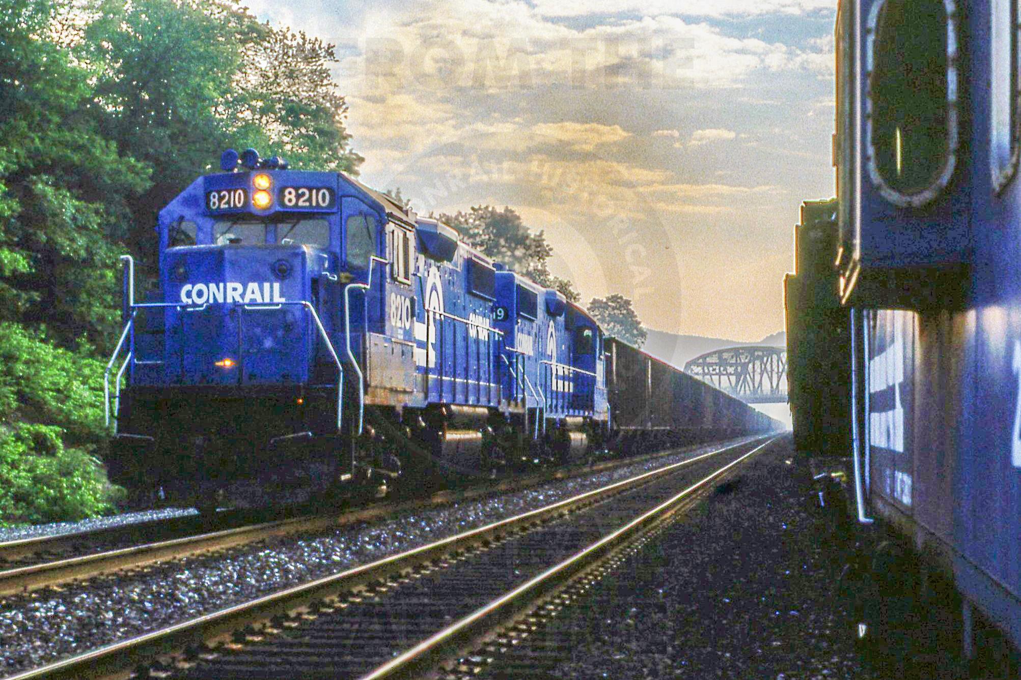 Previous Next Photo By Rich Bowes CR 8210 EMD GP38-2 Pittsburgh Line Unknown PA with unknown train Year 1989 Original Date 6/1/89 Location Unknown PA Conrail Number 8210 Additional Galleries Rich Bowes' Conrail Photographs Collection CRHS Conrail Photo Archive Contributions
