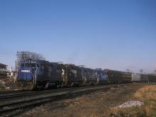 Norfolk Southern run-through power was often a frequent find on ENRO and ROEN, the NS interchange trains from Enola to Roanoke. Here a high hood GP lends some muscle to the southbound ENRO working through Camp Hill PA.