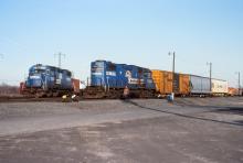 CR 8280 works the south end of the yard at Bay View while CR 8278 idles alongside.