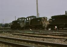 CR 8536 and 8496 may have seen their last operating days as they rest in a line of SW-1's at Morrisville yard on June 14, 1980.