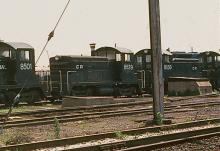 CR SW-1 8501, 8539, and 8550 rest in a line of retired units at Morrisville yard in June, 1980.