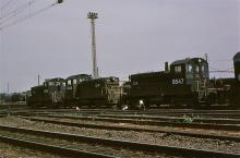 A trio of CR SW-1's, 8547, 8536, and 8496 appear ready for retirement in a service line at Morrisville yard on June 14, 1980.