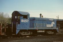 CR 8657, ex-LV 130, rests outside the Bethlehem roundhouse in April, 1977.
