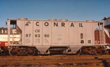 Previous Next Photo By Jeff Weaver CR 878390 is seen at Elizabeth, NJ on 8/18/78. Car is ex NYC 883304, painted P62 7-77 and is stenciled SAND LOADING ONLY. Year 1978 Original Date 4/18/78 Equipment Type Class 860H Conrail Number 878390 Collection CRHS Conrail Photo Archive Contributions