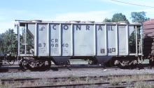 CR 879840 is seen at South Portland, ME on 8/24/80. Car is ex PRR 257943, built 4-58 by P-S and was painted P59 10-79.