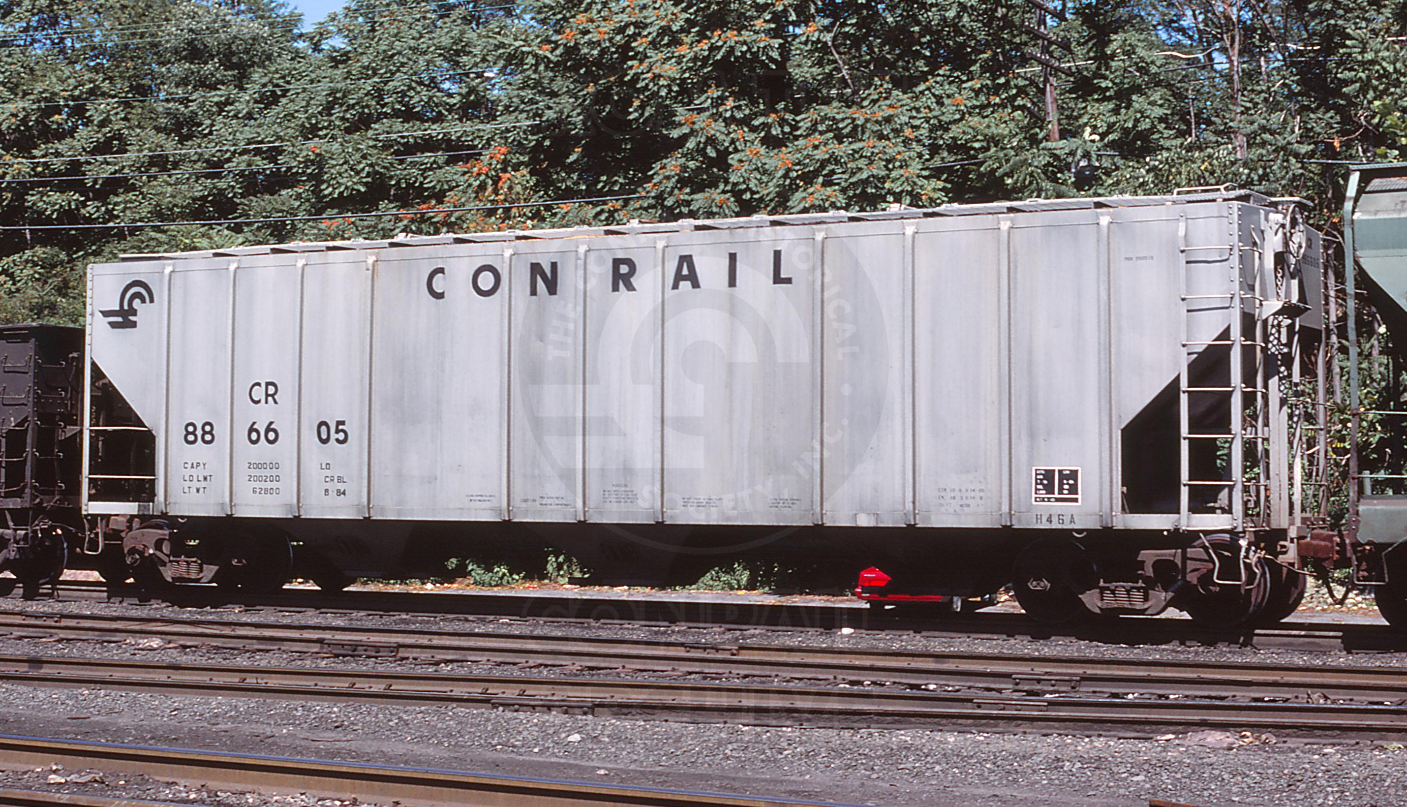 Previous Next Photo By Richard Louderback Collection of Chris Carangi CR 886605 is seen at Enola, PA on 6/21/86. Car is ex PRR 260519, built 6-65 and was painted CR-BL 8-84. It was deleted by CR on 12/5/95 and became AMLX 465062 (Deleted 11/13/99) and finally DME 47090 (Deleted 9/15/07). Year 1986 Original Date 6/21/86 Location Enola PA Equipment Type Class H46 Conrail Number 886605 Collection CRHS Conrail Photo Archive Contributions