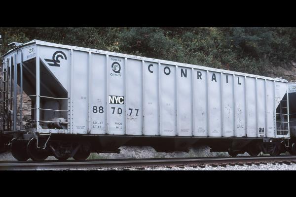 CR 887094 is seen at Northumberland, PA on 8/3/86. Car is ex PC 887094, built 9-68 by HCS and was painted CR BL 6-86. It was deleted 2/11/14.