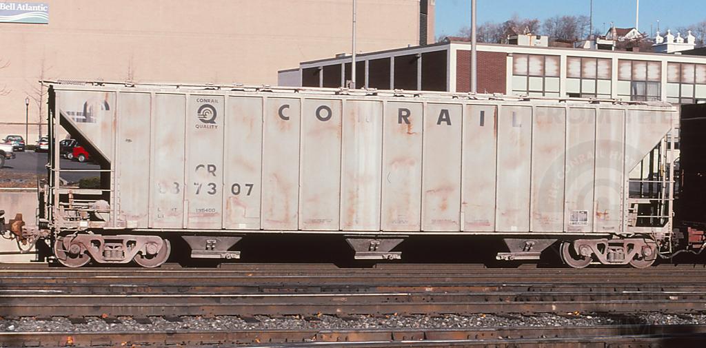 CR 887307 is seen in the consist of a WB at Altoona, pA on 11/24/98. Car is ex PC 887307.